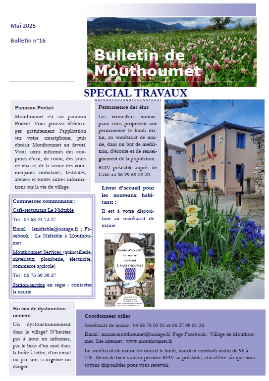 La Mairie est ouverte au public le lundi, mardi et vendredi de 9h à 12h. Du fait de la situation sanitaire actuelle, merci de bien vouloir prendre RDV au préalable de votre venue au secrétariat de mairie.